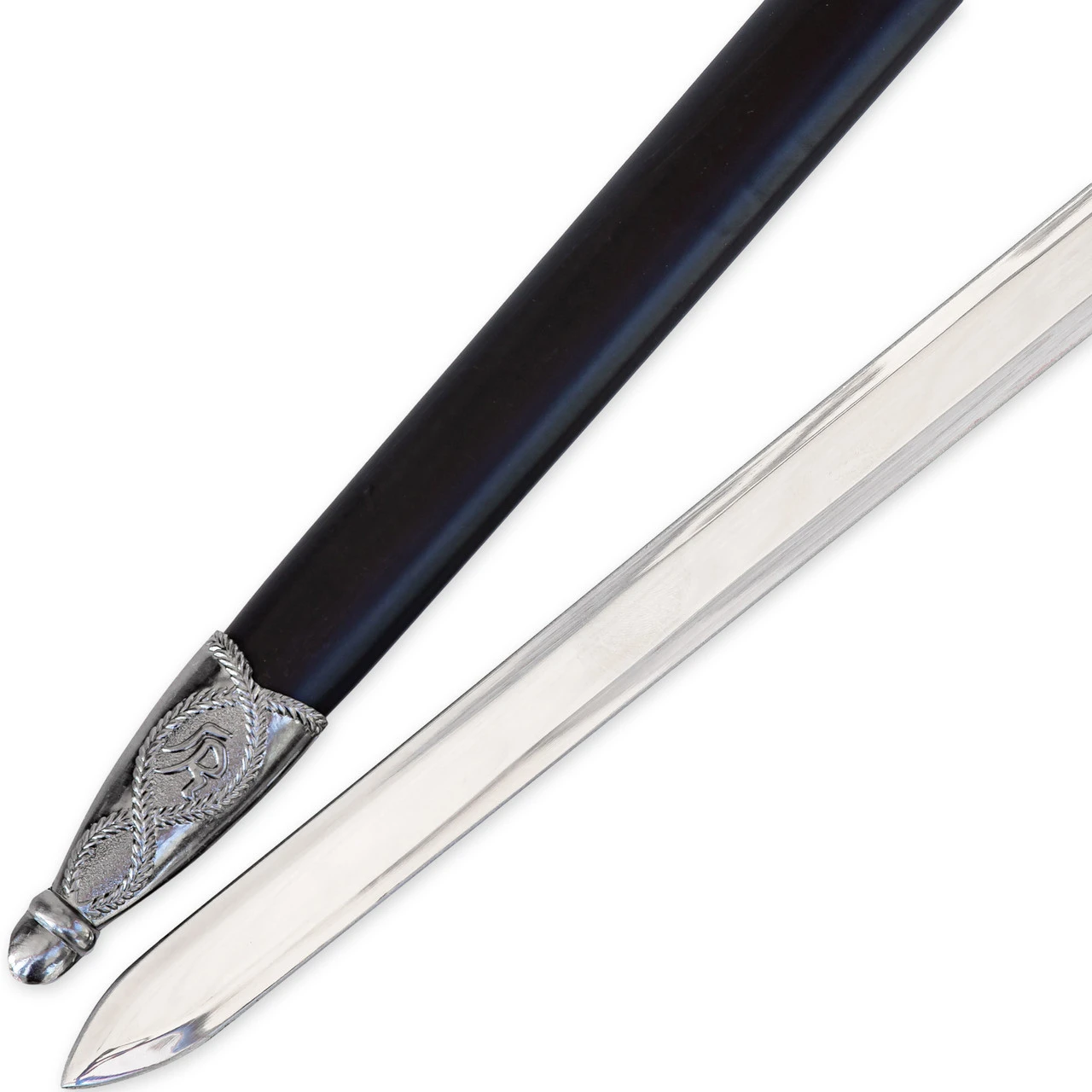 This sword is a replica of the sword Roland used to slash a huge gash into a boulder in a single strike. The Boulder Gash Medieval Sword of Roland is a recreation of that trusted sword and clearly features intricate detailing including an ‘R’ on the chape and locket of the scabbard that stands for ‘Roland.’ The handle is crafted with a gorgeous brushed silver finish. Crossing patterns are featured on the handle for grip and chimeras’ faces adorn the ends of the guard. A cross stands tall on both sides of the pommel. The Boulder Gash Medieval Sword is fit for a righteous paladin and the memory of Roland lives on in the stories he left. Overall Length: 39 Inches. Weight: 3.8 lbs.
