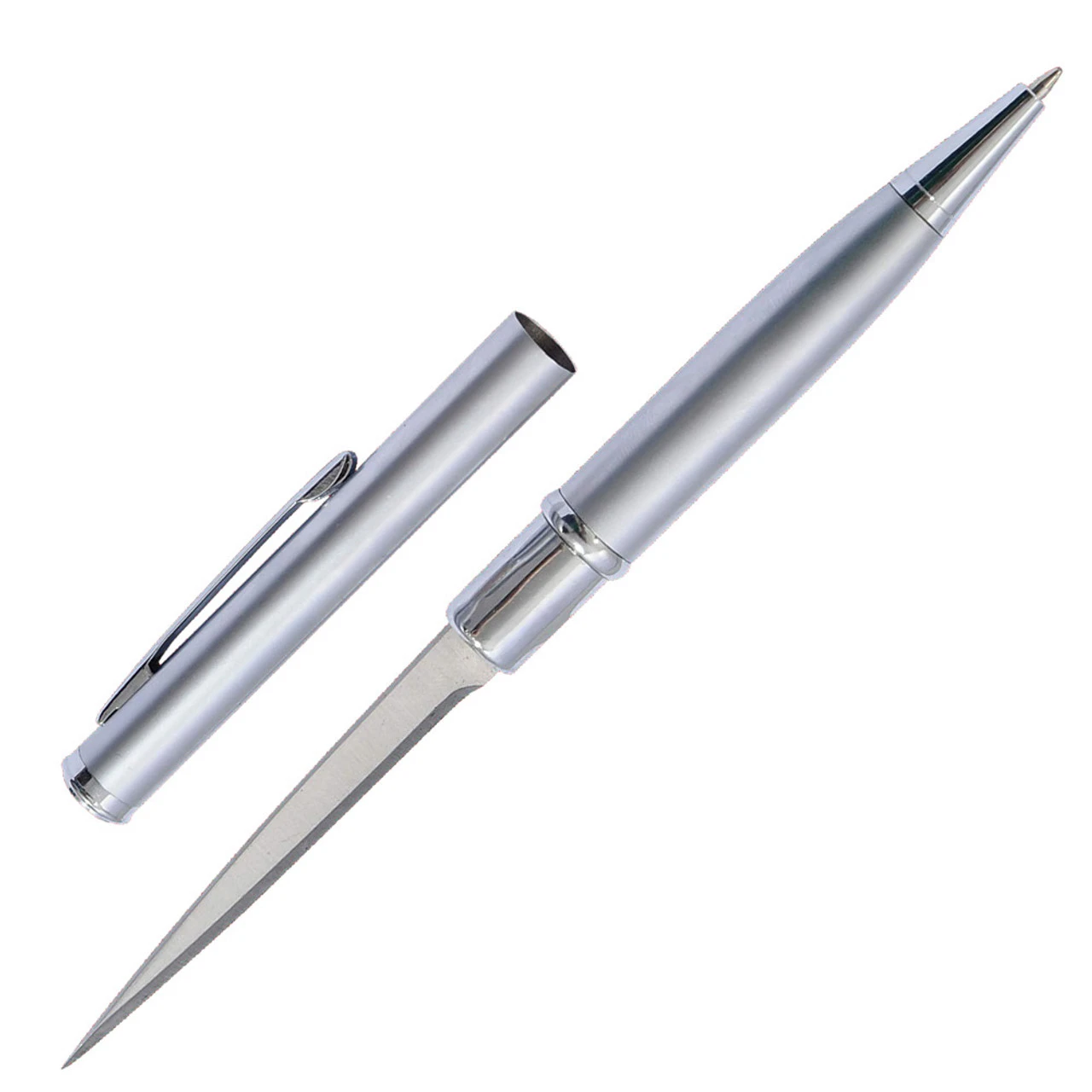 These top notch executive silver pen knives are easily concealed so you can take them with you just about anywhere. No one will think that these expensive looking writing instrument actually contains a knife that can be unsheathed very quickly. These pen knives are used for self defense. Pen Length: 5.5 inch each