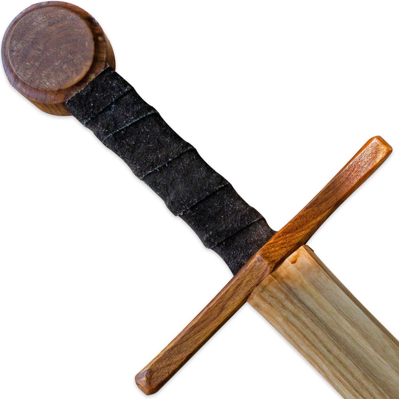 Empathetic Blade Templar Viking Beech Wood Pretend Play Practice Theater Wooden Sword W/ Black Leather Wrapped Handle