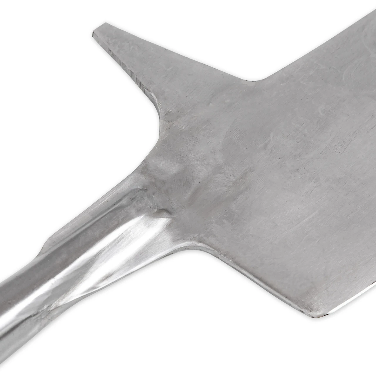 Like the Scythe, the bill was another tool designed for helping on a farm that was chronicled in medieval texts of battles. A design much like a scythe characterizes the bill; however, the addition of top and back spikes, a wider blade, and shorter hook differentiate the bill from the well-known scythe. The Farm to Battlefield English Bill Spearhead is a high carbon steel replica of the English bill, as opposed to the Italian bill which has a much thinner blade. This bill spearhead has a top spike, a back spike, as well as a hook to incorporate all possible uses for it for reenactors or those who teach about medieval times to help their students visualize these wonders of blacksmithing. The Farm to Battlefield comes with a predrilled shaft so you can place it onto a wooden handle of your choice as soon as you receive it. Overall Length: 25.5 Inches. Weight: 2.8 lbs.