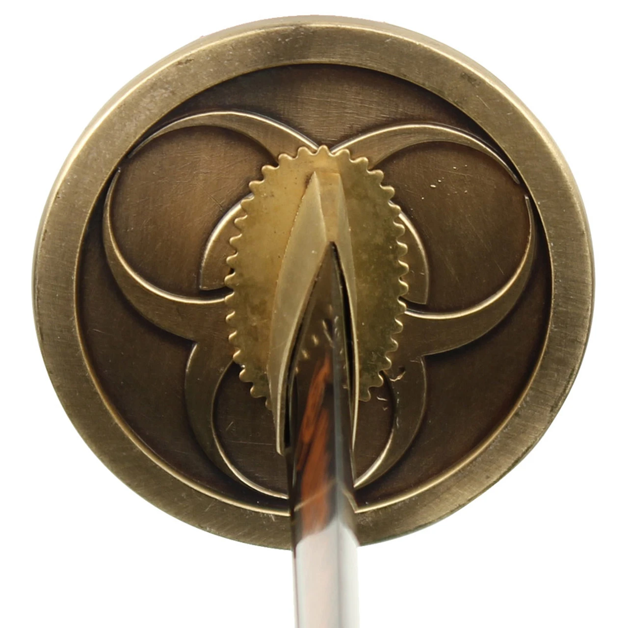 Scabbard Material: Hard Wood, Brown Leather Wrap, Steel Cap, White Scabbard Wrap