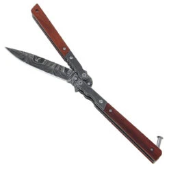 Double Feature Damascus Steel Heavy Duty Fanning Butterfly Knife