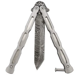 Steel Coal Strike Butterfly Knife | Damascus Steel Drop Point Blade