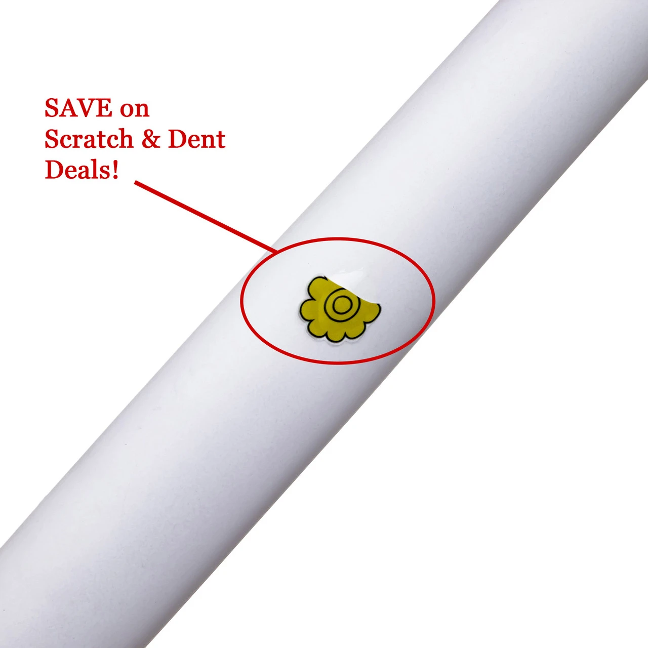 This replica may be made of foam, but it is certainly no children’s toy. This Ame no Habakiri katana sword is composed of polyurethane foam and features a 10 mm fiberglass core. Polyurethane foam is both durable and flexible, and the added fiberglass core creates a strong sword that can be used for cosplay as well as kicking bad guy butt in mock battle. The blade base is black and features a jagged red and white painted Hamon. The handle is molded to simulate a traditional Japanese wrapping in white cloth, with an underlayer of white ray skin. Purple banding and gold simulated studs are also featured on the handle. An ornate gold pommel tops the handle, and the gold foam guard that has a trefoil design comes detached for easy assembly. A mock habaki separates the blade from the handle. Included with your purchase is a matte white hard plastic scabbard with painted gold detailing and vinyl stick-on floral decals to perfectly match the sword in the anime series. Due to some slight imperfections in the scabbard design, this replica cosplay sword is offered at a deal you simply CANNOT pass up! Overall Length: 39.25 inches, Blade Length: 29 inches