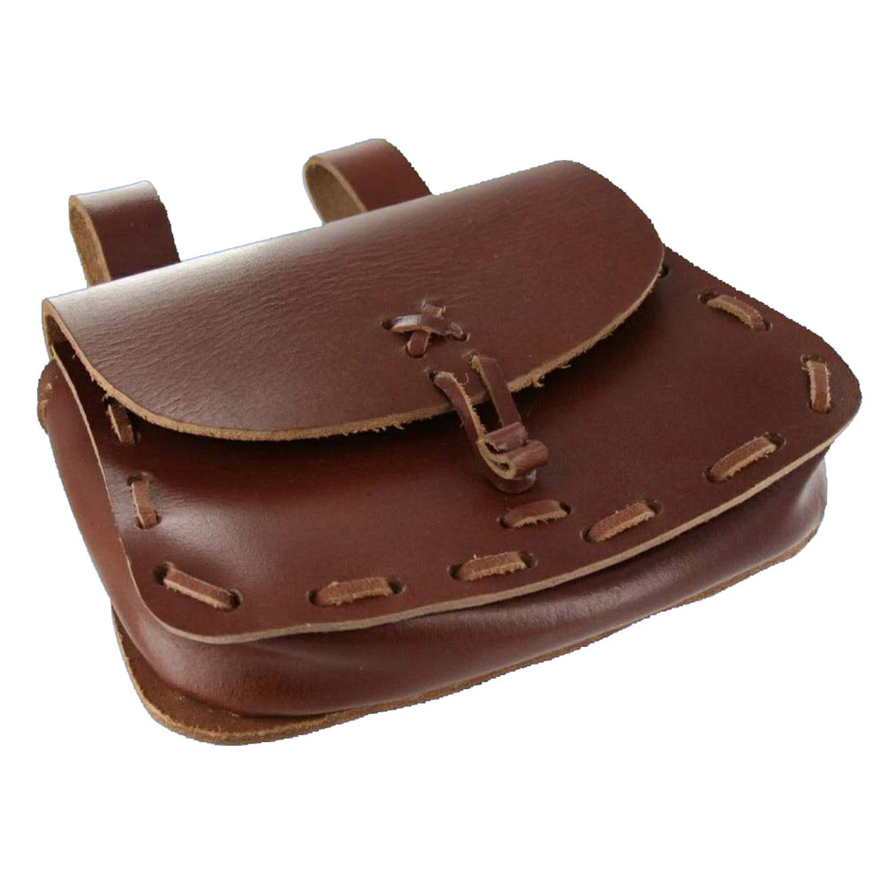 Tough raw hide sections stitched together with leather rope make this Festival Pouch purely genuine. Leather riveting latch secures the flap with tension. On the back of the Festival Pouch there are two belt loop holes. You could also use a shoulder strap connected to the loops. A must have for festival goers. Overall Length: 9.5 Inches. Material: Natural Leather Hide. Features: Leather Tension Lock. Fitment: Unisex, All Thick Leather Hide.