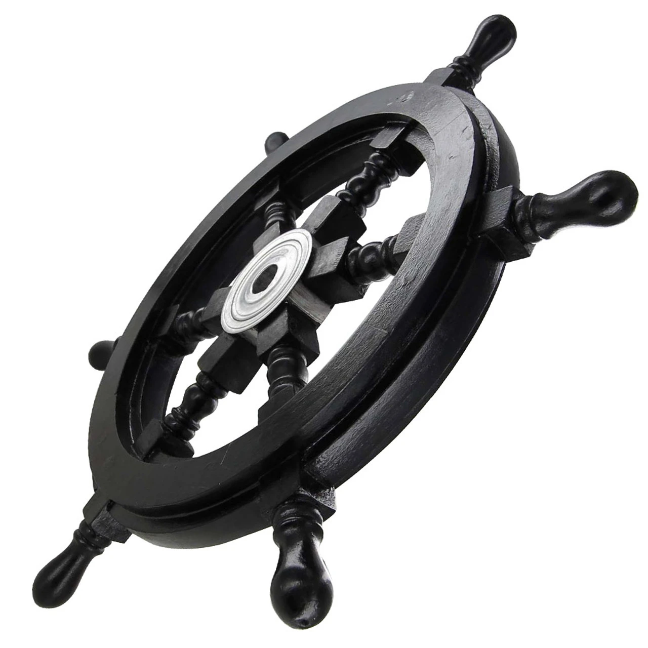 Queen Anne’s Revenge was a frigate, most famously used as a flagship by the pirate Blackbeard. She had been launched by the Royal Navy in 1710, and captured by France in 1711. She was used as a slave ship by the French, and was captured by pirates in 1717. Blackbeard used the ship for less than a year, but captured numerous prizes using her as his flagship. A private research firm discovered the wreck believed to be Queen Annes Revenge on November 21, 1996. Among the wreckage they found, fully intact her helm. Today we bring you the Queen Annes Revenge Pirate Ships Wheel just like the one from the wreckage. It is constructed from all natural wood with a black finish like the souls that served on the Queen Anne. The hub is aluminum and features six spokes. This beauty will look great accenting the wall in your office or library.