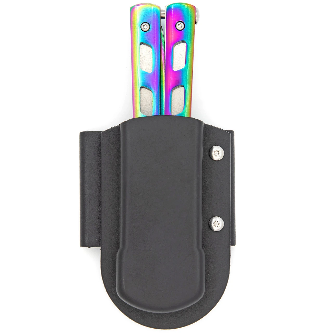Rainbow Warrior Sunrise Butterfly Knife | Titanium Damascus | Drop Point | Holster Included