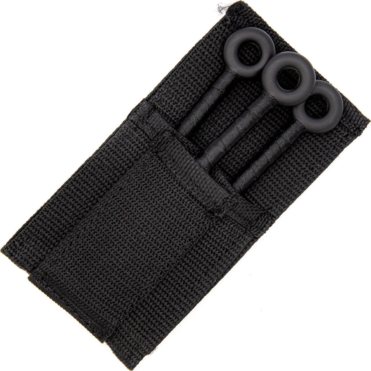 The ultimate ninja needs an arsenal of weapons at their disposal that are both stealthy and excellent quality. This set comes with 3 ninja kunai so small they can fit in the palm of your hand. Don’t let their size fool you though; they are made from cast metal with a perfect weight and balance. Each kunai handle is wrapped in ribbon just like the ones seen in the popular Naruto anime series. Included with this set is a black nylon pouch with a belt loop on the back for convenient and stealthy carry. Overall Length: 5.25 inches, Blade Length: 2.75 inches